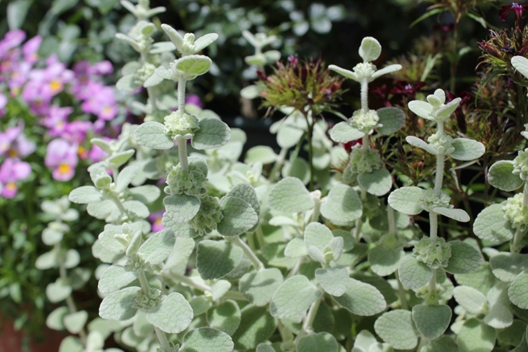 細かい毛に覆われた葉は、シルバーリーフですので、他の草花との相性がとても良いです。花壇に植えてみたり、色々な草花と組み合わせて寄せ植えにしてみたりと、さまざまな場面で大活躍します。葉は常緑ですので、一年を通して鑑賞する事が出来ます。