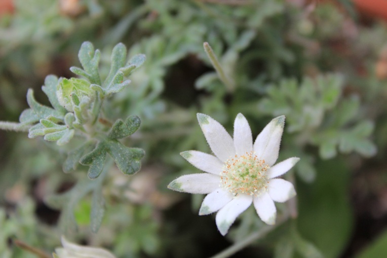花や葉、茎が細かい毛で覆われていて、触るとフランネルの布地の様な手触りがすることから、この名が付けられました。原産地がオーストラリアの多年草です。